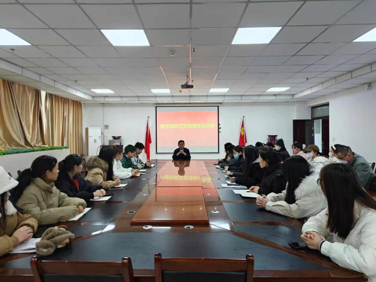 院党委书记翟广辉结合自身成长经历,对新转正的党员同志们提出四点希望与要求:一是加强理论学习,坚定理想信念。坚持不懈用党的创新理论武装头脑、指导实践,严格要求自己,争做合格党员;二是政治素质过硬,对党忠诚。积极参与老师科研项目,社会实践活动等。三是履行好党员义务和责任,一切行动听指挥。在学习和生活中为同学们树立旗帜,团结带领同学们朝着学院发展目标努力。四是勇于担当作为,善于攻坚克难,在新的起点上做出更大成绩,取得更大进步。会上,党员代表张鑫谈了心得体会,并表示在以后的学习、生活中将继续严格要求自己,发挥好表率作用。