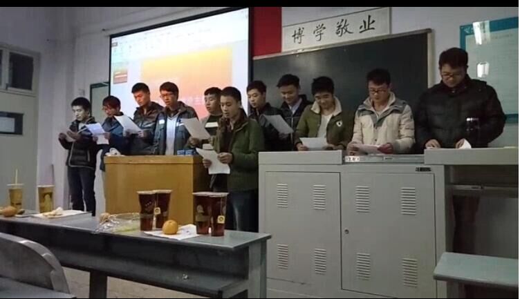 班会上,首先由班长张博对上一阶段的学习工作情况做了简要汇报,并指出了班级近期学习中存在的问题,引起了同学们对学风建设的重视。其次,学习委员杜晓青对班内的作业上交情况进行简单总结,并希望大家认真的完成每位老师布置的作业,对自己学习中存在的问题及时发现与改正,在行动上重视学习的每一环节。随后,团支书贾然然针对“班级凝聚力”发言,并为大家放映了同学们一块学习生活的视频。她在带领同学们回忆班级过去一年多的大学时光过程中,也表达了愿大家以后更加努力,更加团结的美好愿望。最后,副班长洪兵向大家展示了“班级学风文化建设”幻灯片,很恳切地对班里同学在学习上提出了几点可行性建议,并赢得同学们的肯定。班会结束后,很多同学表示,经过此次班会,自己更加深入的了解到学风建设的重要性,并表示将从自身做起,努力为学风建设贡献力量。